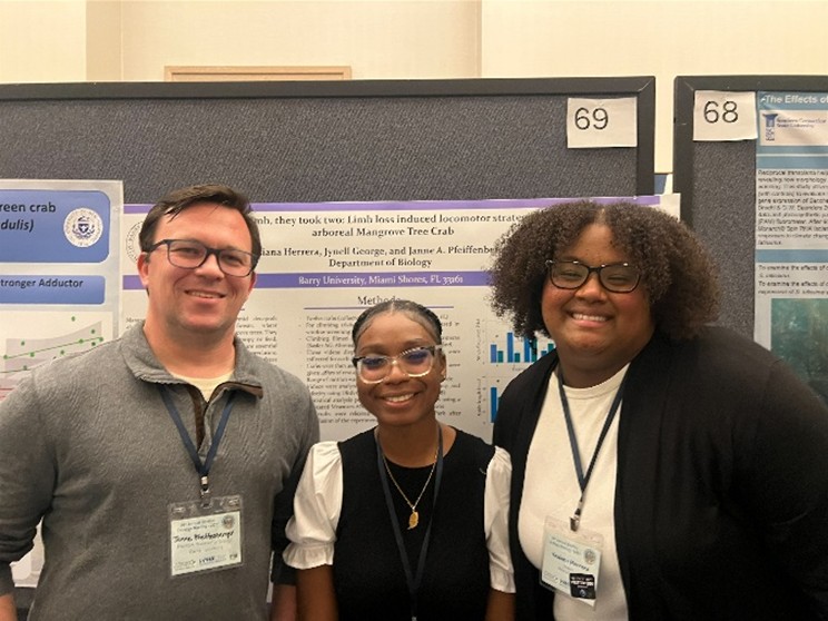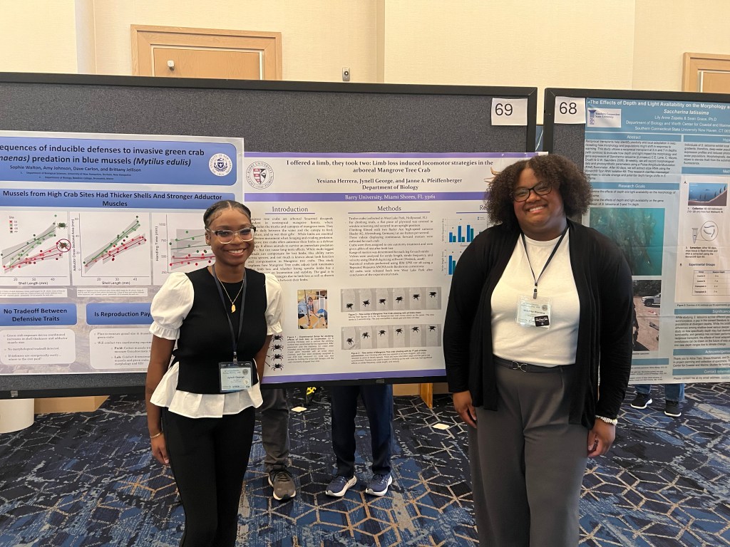 Students Yesiana Herrera and Jynell George also contributed to the conference with their project on locomotor strategies in arboreal mangrove tree crabs. Reflecting on her first conference experience, George shared, “The scheduled talks were captivating and allowed me to strengthen my knowledge on the world of ecology… Many people were interested in our poster and spent a lot of time conversing with us about how we could further our research.”